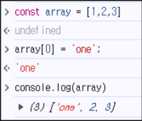 그러나 배열의 경우에는 에러 없이 값이 변경되는 이상한 일이 발생한다.