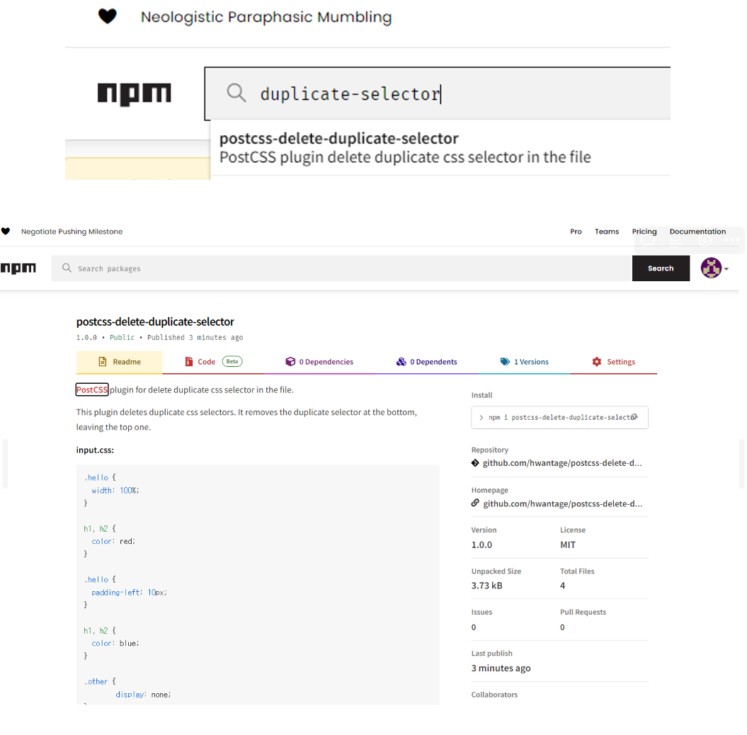 CSS-Deduplication part 3 (postcss 플러그인을 npmjs.org에 배포)
