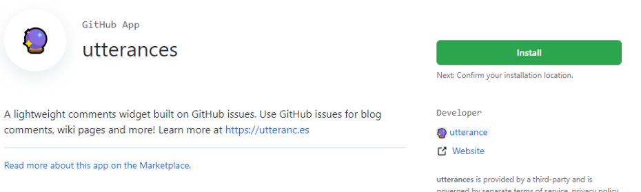 하지만 최근에는 Github Application 방식으로 친화적이며 편리하며 접근성이 강력한 Utterances 를 많이 이용합니다.